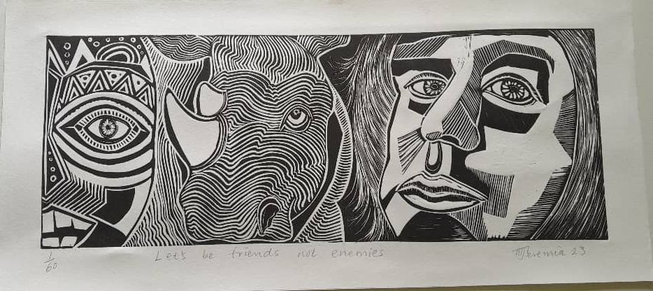 Renowned Namibian artists Haihambo Jeremia and Nghiwilepo Tuhafeni have opened the powerful art exhibition titled “Save Us from Fading,” focusing on the critical issue of rhino poaching in Namibia. The exhibition runs until 14 July 2024 at Omba Gallery, Namibia Craft Centre, Windhoek.