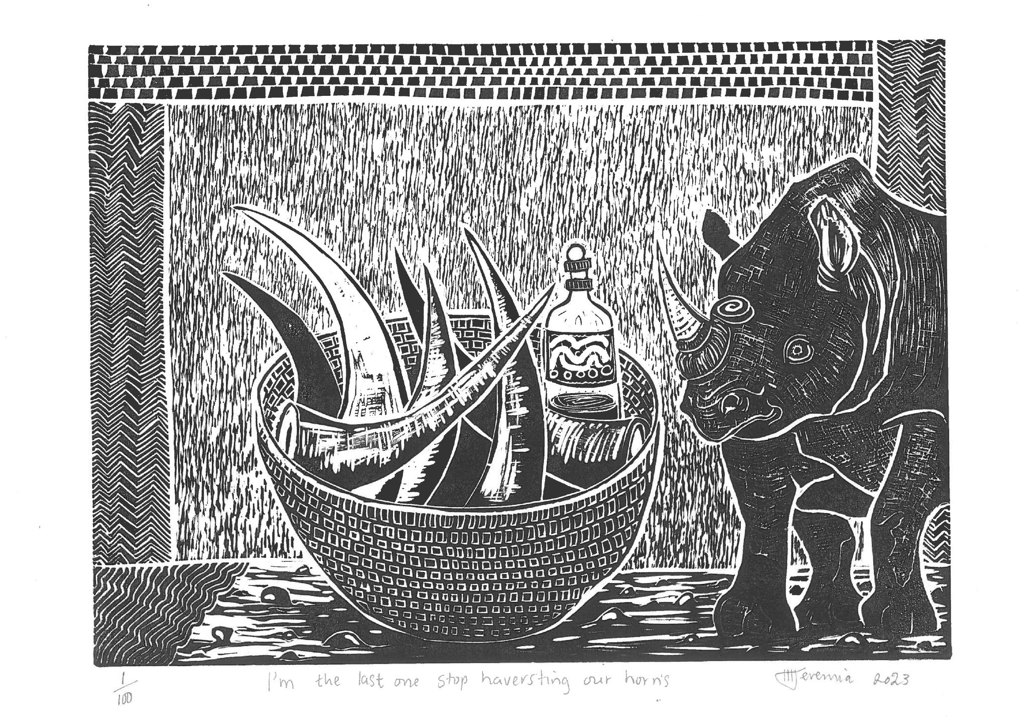 This exhibition is a heartfelt plea to protect Namibia’s endangered wildlife, particularly rhinos, from the devastating impact of poaching. The ongoing crisis has deeply moved Haihambo, driving him to use his artistic talents to raise awareness and inspire action…